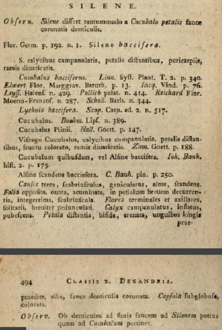- Cucubalus baccifer L., 1753 (Cucubalus était le nom latin d'une plante déjà citée par Pline le Naturaliste et souvent traduit par morelle, un nom vernaculaire ambigu).