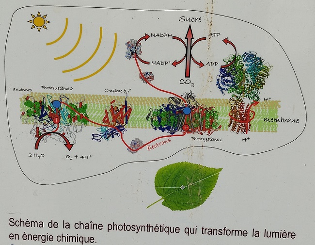 Schéma de la chaîne photosynthétique qui transforme la lumière en énergie chimique,