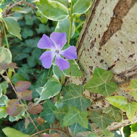 - Aux Buttes Chaumont, à Paris, c'est Vinca major var. variegata Loudon, 1842, que l'on peut voir fleurir au mois de mars.